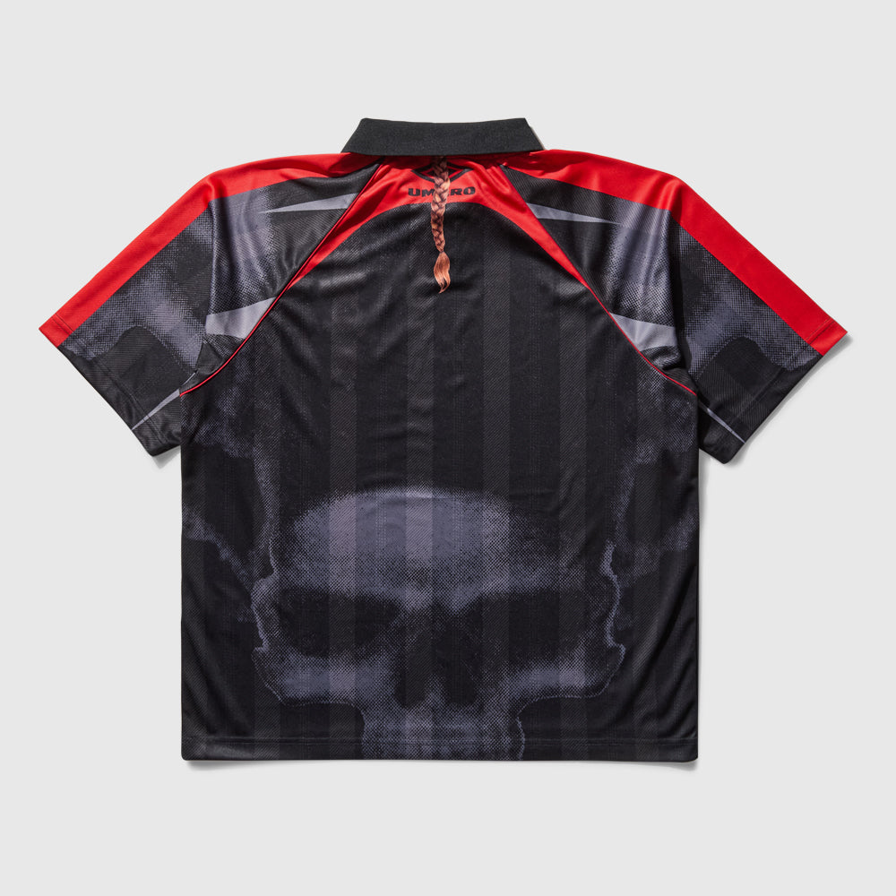 Boiler Room and Umbro reveal their second collaborative collection: a uniquely coded club capsule primed for the dance floor and the pitch. Led by Evian Christ & modelled by the legends, regulars & residents behind his enduring club cult TranceParty, the collection launches on the 18th September. Following the multiple sell-out success of their debut collection, Boiler Room & Umbro team up again to create their unique take on sports-forward clubwear. Stripped back and monochromatic, the six-piece deep capsule takes classic football garms—shell suit & football top—and gives them a future-facing flip, celebrating the new wave of football inspired ravewear. To launch the collection, Boiler Room & Umbro have collaborated with Warp Records polymath Evian Christ & his club crew & event series TranceParty, whose arcane football references & avant club aesthetics make them the perfect partner to accelerate this project. Modelling the collection are the legends, regulars & residents who make up TranceParty's singular DNA. The collection sees an update on the previous collection's best-selling football shirt––this time in black on black, in a short-sleeve. This edition's lead is a classic track shell suit with 3M trim, detailed finishing & rubberised logo printing. Additional pieces include signature Boiler Room items with logo-front hoodie and a t-shirt.   Collection now live! Shop here