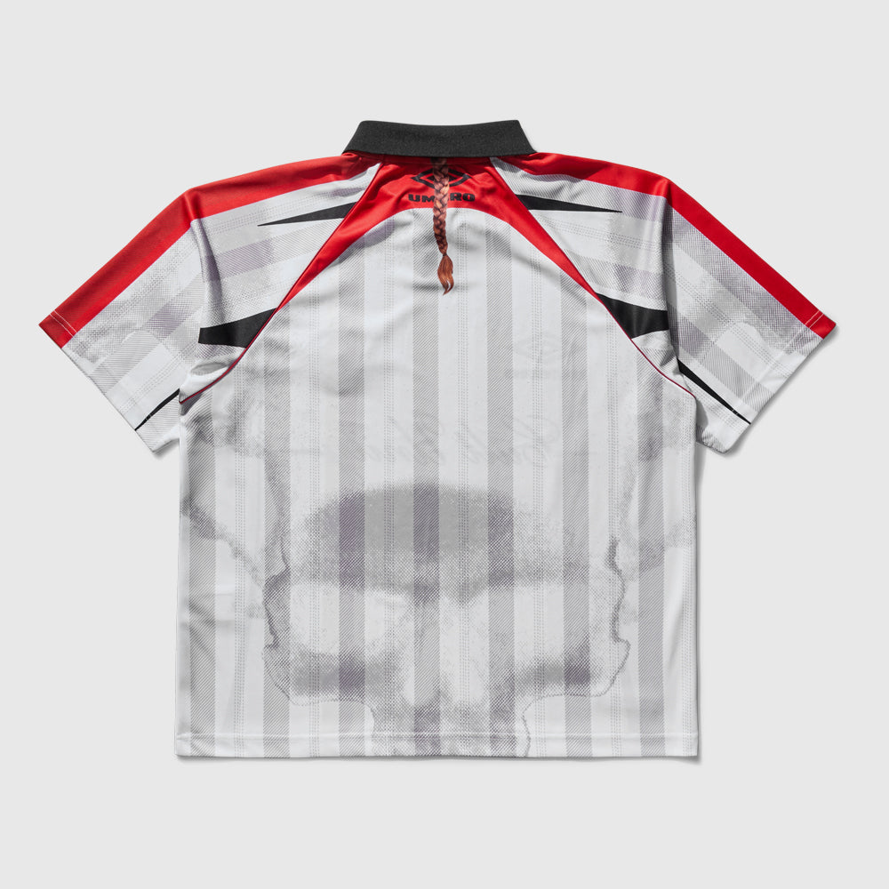To mark our centenary, we've teamed up once more with luxury streetwear partner Aries for a third instalment of our much-celebrated collaboration. Inspired by our rich football archive and our historic relationship with the English game, Aries Arise x Umbro is releasing an exclusive celebratory "red, white, and blue" collection of Aries sportswear, just in time for the Euros 2024 kick-off. The Collaboration Capsule Our Aries x Umbro collaboration capsule includes: Two Classic Short Sleeve Football Jerseys: Featuring the Aries archive "Aries A-Rose" graphic as a subtle all-over rose print backdrop, an ode to the "English Rose". The traditional jerseys come in both red and white with the renowned "Aries Temple" logo on the left chest and our "Double Diamond" logo on the right. Football Shorts and Kit Accessories: Complementing the jerseys, these pieces maintain the collection's theme and aesthetic. Key Features Resurrected Aries Archive Graphics: The Aries archive "Aries A-Rose" graphic has been resurrected and repeated throughout the football jerseys, creating a subtle all-over rose print backdrop. Exclusive Centenary Graphic: The original "Centenary" graphic emblazoned on the back of all jerseys features the number "100", combining the Aries x Umbro iconic collaborative font and our "Double Diamond" logo. Shop the full collection here